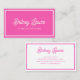Mit unserer modernen Personalisierten Monogram und Name Hot Pink Business Card verbinden Sie Eleganz und Professionalität perfekt. Diese Visitenkarten mit zeitgenössischem Design in heißen Rosa sind mit Ihrem Monogramm und Namen personalisiert und sorgen für einen einzigartigen und unvergesslichen Eindruck. Ideal für Networking-Events, Kundenmeetings oder einfach nur die persönliche Marke zu steigern, verbinden diese Karten Eleganz mit Funktionalität. Aus hochwertigem, glattem Karton gefertigt, garantieren sie Langlebigkeit und ein erstklassiges Gefühl. Mit diesen personalisierten Visitenkarten heben Sie sich in jeder beruflichen Umgebung ab. Entdecken Sie unsere Kollektion für mehr Koordination und bleibe Sie über neue Produkte auf dem Laufenden. Kontaktieren Sie uns noch heute, um Ihre eigenen Visitenkarten zu personalisieren oder mehr über unsere Angebote zu erfahren.