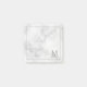 Modernes, minimalistisches Design mit personalisiertem Monogramm und Namen in grauem, modernem Sans Serif Schriftart auf weißem Marmorboden.