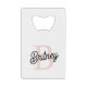 Das moderne Personalisierte Monogramm und Name Pastel Pink Kreditkarte Bottle Opener, ein elegantes und stilvolles Accessoire, das Praxisnähe mit einer persönlichen Touch verbindet. Dieses in einem weichen Pastellrosa dekorierte und mit Ihrem Monogramm und Namen angepasste Flaschenöffner in Kreditkartengröße passt sich bequem in Ihre Brieftasche oder Tasche und ist somit ideal für den unterwegs Einsatz. Aus hochwertigen Materialien gefertigt, bietet es Langlebigkeit und Benutzerfreundlichkeit, sodass Sie immer auf ein erfrischendes Getränk vorbereitet sind. Ideal für den persönlichen Gebrauch oder als nachdenkliches Geschenk, fügt dieser Flaschenöffner jedem Anlass einen eleganten und personalisierten Flair hinzu. Entdecken Sie unsere Kollektion für mehr Koordination und folgen Sie uns für Updates zu neuen Produkten. Kontaktieren Sie uns noch heute, um Ihren eigenen Flaschenöffner individuell zu gestalten oder mehr über unser Angebot zu erfahren.