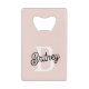 Das moderne Personalisierte Monogramm und Name Pastel Pink Kreditkarte Bottle Opener, ein elegantes und stilvolles Accessoire, das Praxisnähe mit einer persönlichen Touch verbindet. Dieses in einem weichen Pastellrosa dekorierte und mit Ihrem Monogramm und Namen angepasste Flaschenöffner in Kreditkartengröße passt sich bequem in Ihre Brieftasche oder Tasche und ist somit ideal für den unterwegs Einsatz. Aus hochwertigen Materialien gefertigt, bietet es Langlebigkeit und Benutzerfreundlichkeit, sodass Sie immer auf ein erfrischendes Getränk vorbereitet sind. Ideal für den persönlichen Gebrauch oder als nachdenkliches Geschenk, fügt dieser Flaschenöffner jedem Anlass einen eleganten und personalisierten Flair hinzu. Entdecken Sie unsere Kollektion für mehr Koordination und folgen Sie uns für Updates zu neuen Produkten. Kontaktieren Sie uns noch heute, um Ihren eigenen Flaschenöffner individuell zu gestalten oder mehr über unser Angebot zu erfahren.