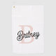 Das moderne Personalisierte Mongram und Name Pastel Pink Golf Handtuch, ein stilvolles und funktionelles Accessoire für begeisterte Golfer. Dieses erstklassige Golfhandtuch zeichnet sich durch ein elegantes pastellrosa Design aus, personalisiert mit Ihrem Monogramm und Namen für eine einzigartige und elegante Touch. Aus hochwertigem, absorbierendem Material gefertigt, sorgt es dafür, dass Ihre Ausrüstung während Ihres Spiels sauber und trocken bleibe. Dieses Handtuch eignet sich ideal für den persönlichen Gebrauch oder als nachdenkliches Geschenk für Golfliebhaber und verbindet Eleganz mit Praxisnähe. Steigern Sie Ihr Golferlebnis mit einer personalisierten Touch. Entdecken Sie unsere Kollektion für mehr Koordination und bleibe Sie über neue Produkte auf dem Laufenden. Kontaktieren Sie uns noch heute, um Ihr eigenes, maßgeschneidertes Golfhandtuch anzupassen oder um mehr über unsere Angebote zu erfahren.