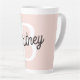 Die moderne Personalisierte Monogram und Name Pastel Pink Latte Tasse, eine stilvolle und elegante Ergänzung Ihrer Trinkbehälter Kollektion. Diese neueste Tasse zeichnet sich durch ein zeitgemäßes Design in sanftem Pastellrosa aus, personalisiert mit Ihrem Monogramm und Namen für eine einzigartige Touch. Ideal, um Ihre Lieblingsgetränke wie Kaffee, Tee oder heiße Schokolade zu genießen, kombiniert es Funktionalität mit personalisiertem Stil. Aus hochwertiger Keramik gefertigt, garantiert es Langlebigkeit und einen komfortablen Griff. Ob für Ihren eigenen Gebrauch oder als nachdenkliches Geschenk, diese personalisierte latte Tasse verleiht Ihrem Alltag eine Touch von Charme und Eleganz. Entdecken Sie unsere Kollektion für mehr Koordination und bleibe Sie über neue Produkte auf dem Laufenden. Kontaktieren Sie uns noch heute, um Ihre eigenen, maßgeschneiderten Tasse oder um mehr über unsere Angebote zu erfahren.