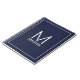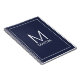Modernes, minimalistisches Design mit personalisiertem Monogramm und Namen in weißem, modernem Sans Serif Schriftart auf marineblau Hintergrund.