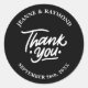 Erhöhen Sie Ihre Gastgeschenke Hochzeiten mit unserem "Moderne Personalisierte Schwarz Danke Gastgeschenk Hochzeit Classic Round Sticker". Diese eleganten, individuell anpassbaren Aufkleber fügen eine raffinierte Touch, mit Ihren Namen und Hochzeitstag in elegantem Schriftart. Ideal für das Abdichten von Umschlägen, das Dekorieren von Geschenken oder das Aufwerten von Gefallen, bieten sie eine stilvolle Art, Ihren Gästen Dankbarkeit auszudrücken. Das zeitlose Schwarz-Design ergänzt jedes Hochzeitsthema und macht Ihren besonderen Tag noch unvergesslicher mit einer personalisierten, herzlichen Touch.