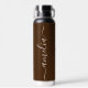 Modernes Personalisierter Name Script Schwarz und Braun Hochzeitsgeschenk Wasser Flasche.