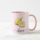 Diese fröhliche, personalisierte Kaffee-Tasse ist die perfekte Art, Ihrem Morgenprogramm einen farbenfrohen Pop hinzuzufügen. Das auffällige Aquarelllachs-Design wird Ihnen beim Kaffee oder Tee sicher ein Lächeln ins Gesicht setzen. Und mit der Möglichkeit, es mit Ihrem Namen, Monogramm oder einer speziellen Nachricht zu verändern, wird es zu einem wirklich einzigartigen Stück, das Sie jeden Tag mit Liebe benutzen werden,Moderne Personalisierte Wasserfarbe Gelbe Zitrone Rosa Tasse