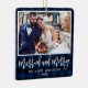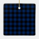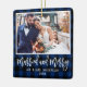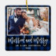Modernes Pinselskript, rustikal Blau Kariert Verheiratet und Merry Wedding Foto Ornament