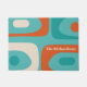 Mitte Jahrhundert Modernes Piquet Minimalistisches Abstraktes Muster in Türkis Aquamarin, Orange und Beige Creme. Spaß, aber ausgeklügeltes Retro-Design aus dem 20. Jahrhundert; ein Nicken in Richtung 50er und 60er, in lustigen Farben. Kann mit Familiennamen oder anderen Texten personalisiert werden. Von Kierkegaard Design Studio.