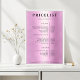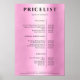 Modernes, einfaches, rosa, Salon-Preisliste-Poster. Bearbeiten Sie Ihr Produkt in wenigen Minuten, indem Sie Ihre Daten hinzufügen. Sie können den Schriftart/die Farbe/Position durch "weitere Personalisierung" ändern.