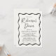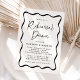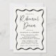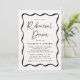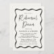 Die Probe-Dinner in stilvollem Ambiente mit den Einladungen der Hochzeitsfeier in Modern Cream und Black Wavy Frame zum Probe Dinner. Das Design enthält die Wörter "Probe Dinner", die in einem handgeschriebenen schwarzen Skript im Kontrast zu einem hellcremefarbenen Hintergrund angezeigt werden. Ihre Probe-Dinner-Details sind von einem schwarzen, gewellten Rahmen umgeben. Dieses Retro-Probe-Dinner lädt zu lässigen und modernen Proben ein.