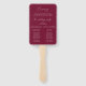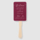 Dieses Hochzeitshandfan mit elegantem weißem Kalligraphie-Set kombiniert zeitlosen Stil mit Funktionalität. Personalisieren Sie den Ventilator mit Ihren Namen, Hochzeitsdatum und Ort, und ein herzliches Dankeschön in fett weißer Schrift. Auf der Rückseite finden Sie Einzelheiten zu Ihrer Hochzeitsfeier und die Namen Ihres Brautparty, um eine vollständige und organisierte Präsentation zu gewährleisten. Der moderne, schlichte und elegante Ventilator eignet sich perfekt für lässige und formelle Hochzeiten zu jeder Jahreszeit. Behalt deinen Gästen Komfort und füge gleichzeitig eine raffinierte Touch zu deiner Hochzeitsfeier hinzu.