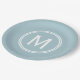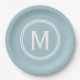 Modernes Pulver Blue Custom Round Gerahmt Monogram Pappteller
