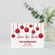 Modernes Red Bauble Weihnachts-Party Save the Date Ankündigungspostkarte