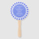 Moderner Hochzeitsfan in Blau und Weiß mit einem lustig gepunkteten Kreis um die äußeren Ränder. Personalisieren Sie den weißen Text für Ihren Hochzeitstag.