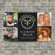 Personalisieren Sie Ihren registrierten Krankenpfleger RN Caduceus Medical Foto Gratulationsbanner, indem Sie 4 Ihrer Absolventen Lieblingsbilder hochladen und ihren Namen und das Jahr anpassen. Das Design zeichnet sich durch einen modernen schwarzen Hintergrund mit einem großen Imitat Gold Glitzer Caduceus Symbol in der Mitte und "registrierte Krankenschwester" zusammen mit ihrem Namen, Klassenjahr und Studienort aus.