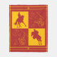 Ein gewagtes und modernes Reitdesign in feuerrotem und warmen Gelb mit den Silhouetten einer Dressur und einem Showspringpferd mit Reitfahrern, die mit Reittieren wie Sattel, Peitsche, Reitstiefeln, Helm und Hufeisen verbunden sind. Personalisieren Sie die Fleecedecke mit Ihrem Monogramm oder Ihren Initialen und machen Sie sie einzigartig. Das ist ein großartiges Wohngestaltung-Objekt für einen Pferdefreund oder einen begeisterten Reiter.