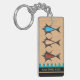 Modernes Retro - 3 Fische auf Kirschholz Personali Schlüsselanhänger
