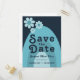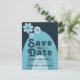 Modernes Retro 70er Bold Blue Wedding Einladungspostkarte