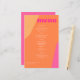 Abstrakte Formen retro Vintagen 70er Stil einzigartig günstigen Preis Hochzeitsmenu Karte mit fett Typografie in einer lebendigen modernen modernen Hot-Rosa Magenta und Orange Chic Farbpalette. ++++++ Bitte beachten Sie, dass alle Farben änderbar sind. +++++++++++++ Geeignet für lässige zeitgenössische Hochzeiten.