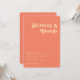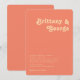 Dieses moderne Retro | Coral abgerundete Ecke Hochzeit Einladung ist perfekt für Ihre einfache Vintage, farbenfrohe tropische boho Sommerhochzeit. Sein einzigartiger böhmischer Schriftart aus der Mitte des Jahrhunderts verleiht diesem Design eine klassisch minimalistische Hippie-Atmosphäre. Wenn Sie ein Design suchen, das helle, kühne Farben für Ihre kreative 70er Strandhochzeit bietet, dann sind dieses Produkt und seine koordinierende Hochzeitskollektion genau das, was Sie suchen. Fühlen Sie sich frei, die Farbe ändern, fügen Sie Ihre eigenen Kunstwerke, Grafiken, oder Fotos. Wenn Sie Fragen zum Design dieses Produktes haben, können Sie sich gerne an uns wenden!