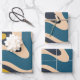 Modernes Retro Liquid Swirl Abstraktes Muster Blau Geschenkpapier Set