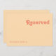 Dieses moderne Retro | Orangencreme vorbehaltenes Schild ist perfekt für Ihre Vintage, farbenfrohe tropische Hochzeit. Sein einzigartiger böhmischer Schriftart aus der Mitte des Jahrhunderts verleiht diesem Design eine klassisch minimalistische Hippie-Atmosphäre. Wenn Sie ein Design suchen, das helle, kühne Farben für Ihre kreative 70er Strandhochzeit bietet, dann sind dieses Produkt und seine koordinierende Hochzeitskollektion genau das, was Sie suchen. Fühlen Sie sich frei, die Farbe ändern, fügen Sie Ihre eigenen Kunstwerke, Grafiken, oder Fotos. Wenn Sie Fragen zum Design dieses Produktes haben, können Sie sich gerne an uns wenden!