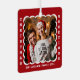 Moderne, minimalistische Retro-Weihnachtsschmuck mit individualisierbarem Foto und Text. Das Foto ist von stilvollen und niedlichen Wimpernbändern umgeben, um eine unterhaltsame und spielerische Touch zu schaffen. Der rote Hintergrund verleiht diesem schönen Ornament einen Weihnachtscharme. ** Vorlagenbild von freepik