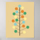 Modernes Baumdesign aus dem Mittelalter mit einfachen Formen der Ära in den Farben des Mitteljahrhunderts. Ein Retro-Look mit hellen Farben.