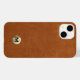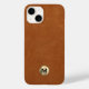 Einfache moderne Brushed Metallic Gold Monogram Emblem Sable Brown Leather Look Texture Phone Case. Elegantes, gebürstetes, metallisches Monogramm-Emblem mit mit Monogramm Initialwert in moderner Typografie auf dem gedeckten, braunen Imitat Leder texturierten Hintergrund.
