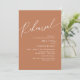 Planen Sie ein Hochzeitsfest Probe Dinner mit der zu sein Braut und zu sein Groom, Terracotta Kupfer braun Thema, vor ihrem BIG-Tag? Mit dieser "Probe" laden wir Sie ein, die zeitlose Minimalistin für das Abendessen der Hochzeitsfeier mit der Einladungskarte zu besuchen. Fügen Sie Ihre Probe Dinner Feier Details.