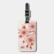 Moderner Monogram Gepäckanhänger mit Sakura Kirschblüten auf neutralem weißem Hintergrund. Text in dunkelbraunem Schatten.