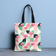 Der moderne Pink Flamingo Geometric Girly Chic Pattern Tote Sack mit modernen tropischen rosa Flamingos auf einem geometrischen Hintergrund. Perfekt als Geschenke für Geburtstag, Weihnachten und Feiertage. Erstellt von Evco Studio www.zazzle.com/store/evcostudio