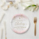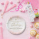 Moderne Rosa Gold Cross Girl Christening Paper Teller