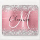 Modernes rosa Ombre Foil Silver Glitzer Monogram Mousepad
