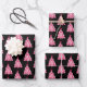 Modernes, rosa Schwarzes Weihnachtsbaummuster Geschenkpapier Set