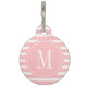 Modernes Rosa und Weiß Streifen mit Monogramm Haustiermarke