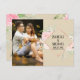 Das Foto Ihres Paares liegt auf der links Vorderseite der Save the Date Postkarte. Ihre Vornamen, Ihr Hochzeitstag und Ihre Hochzeitslocation befinden sich auf der rechten Seite in einem rosa Diamanten, umgeben von hellrosa Rosen. Sie sehen auf einem weichen beigen Hintergrund schön aus. Die Rückseite der Postkarte ist ebenfalls beige und hat eine weiche Rose mit vielen grünen Blätter. Sie können den gesamten Text ganz einfach personalisieren, um Ihre eigenen Save the Date Hochzeitsinformationen einzufügen.