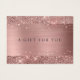 Das moderne, trendige Geschenkgutschein bietet funkelnd Rose Gold Imitate Hintergrund, ein Geschenk für Sie Drehbuch "auf der Vorderseite. Personalisieren Sie weiter mit Ihrem Firmennamen und Kontaktdaten auf der Rückseite.