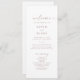 Dieses moderne Goldskriptprogramm der Rose eignet sich perfekt für eine minimalistische Hochzeit. Das schlichte rosa Rosa Rosengold-Design zeichnet sich durch eine einzigartige industrielle Schrift mit modernem Boho-Stil aus. Anpassbar in jeder Farbe. Behalt das Design minimal und elegant, wie es ist, oder personalisiere es durch Hinzufügen von eigenen Grafiken und Kunstwerken. Geben Sie den Namen der Braut und des Bräutigams, das Datum und den Ort der Hochzeit, Dankeschön-Nachricht, Dienstordnung, Brautparty und ein optionales "in Loving Memorial" ein.