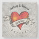 Dieser Untersetzer weist ein Herz im Tattoostil auf, das mit einem orangefarbenen und roten Fraktal Design verziert ist. Das Herz ist mit einem Band-Banner geschmückt. Es gibt zwei Namen oben und ein Datum auf dem Banner für Sie zu personalisieren. Der Text unten lautet "Forever".