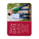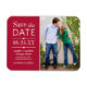 Modernes Foto speichert das Datums-Magnet-Design Features gemischte Typografie mit geschmolzenen Kanten und Herzakzenten. Personalisieren Sie Ihre Hochzeitsdetails und ein beliebtes Verlobung-Foto. Garnelenrot.