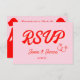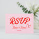 Moderne rosa und rote lesbische Hochzeitskarte mit Doppelringen und Küssen.