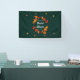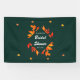 Rustikales und dennoch modernes Design mit Herbstblättern in Rot-, Orange- und Gelbtönen vor einem saisonalen dunkelgrünen Hintergrund