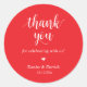 Moderne Hochzeit rustikale Danksagung Geschenke Classic Gefallen Rundsticker, in sauberer Schrift, kleines niedliches rotes Herz, mit Bräu und Bräutigam Signatur und Hochzeitstag, leuchtend rot Thema.