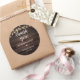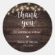 Moderne Hochzeit rustikale Danksagung Geschenke Classic Gefallen Rundsticker, in sauberer Schrift, kleines niedliches rotes Herz, mit Bräu- und Bräutigam-Unterschrift und Hochzeitstag, Hütte braunes Holz, Saitenleuchten Thema.