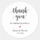 Moderne Hochzeit rustikale Danksagung Geschenke Classic Gefallen Rundsticker, in sauberer Schrift, kleines niedliches rotes Herz, mit Bräu und Bräutigam Signatur und Hochzeitstag, Schwarz-Weiß-Thema.