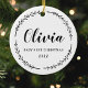 Das erste Weihnachtsgeschmuck eines Babys mit modernem rustikalem Schwarz-Weiß-Kranz mit personalisiertem Namen, Jahr und Foto.