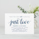 Moderne Rustikale, Navy Blue Script Einladungskarte (mit Kartentitel: nichts extravagant, nur Liebe). Es ist perfekt für Ihren Hochzeitsfeier Empfang / Post Hochzeitsfeier Party. Fügen Sie Ihre Daten in passender schwarzer Schriftart / Schrift hinzu. #TeeshaDerrick