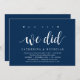 Moderne Rustikale, Navy Blue Script Einladungskarte (mit Kartentitel: oh ja, wir haben es getan). Es ist perfekt für Ihren Hochzeitsfeier Empfang / Post Hochzeitsfeier Party. Fügen Sie Ihre Daten in passender schwarzer Schriftart / Schrift hinzu. #TeeshaDerrick