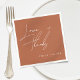 Moderne rustikale Terrakotta-Schrift "Liebe + Dank" mit Braut und Bäumen nennen Papierservietten für Hochzeiten oder besondere Anlässe.